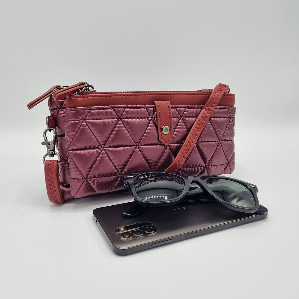 Metallic berry wine red, quilted cross body purse bag